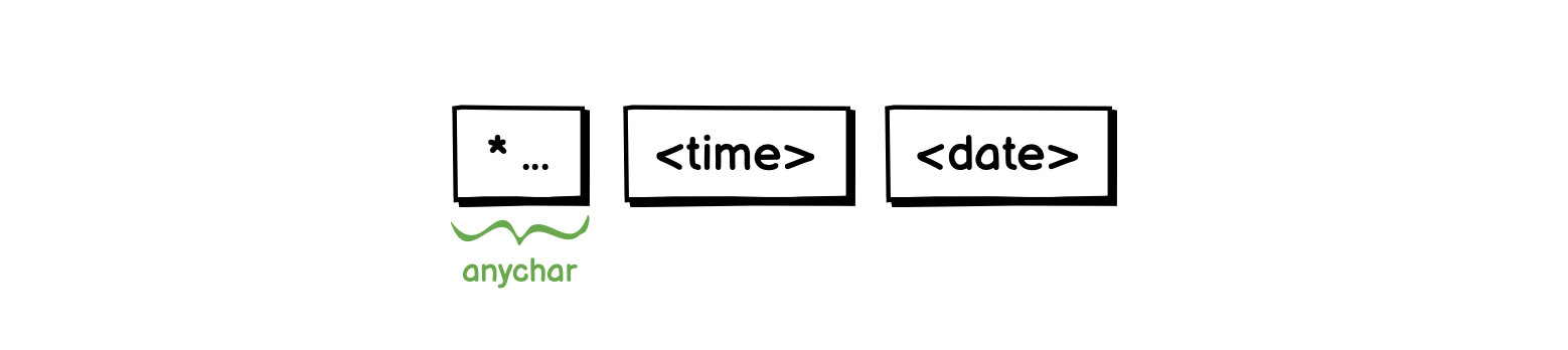 Chạy từ đầu input cho đến trước khi ta gặp phần tử đầu tiên của một <time> token, lưu tất cả kí tự đã gặp lại: